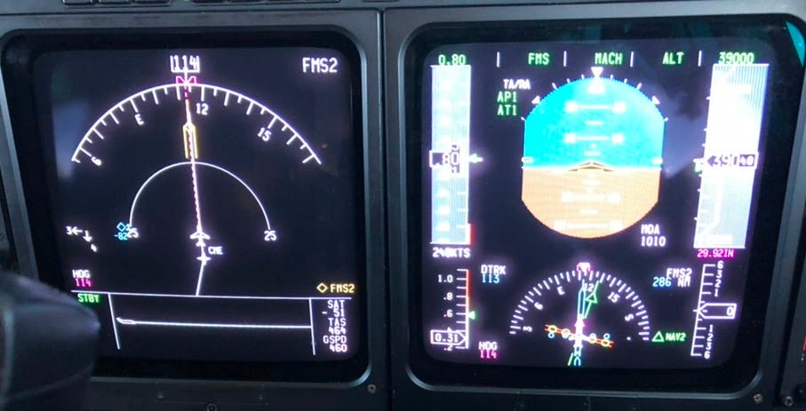 The most obvious problem encountered when conducting primary training in aircraft equipped with a glass panel display resembling a small television screen, is getting the student to not look at it. We work hard to help our students look outside the airplane for attitude awareness, traffic awareness, and to measure control inputs. This is difficult with a conventional aviation six-pack of round dial instruments but becomes exponentially more so with a digital screen a few feet in front of the pilot. These displays are gorgeous, often including niceties like synthetic vision, traffic, and weather information. They are made to be visually stunning and invite the pilot to fly by inside reference while checking outside from time to time, instead of the reverse. This leads to a trained pilot who is less skilled in basic aircraft control by outside visual reference. But there is another reason that these displays are less optimal for primary flight training.