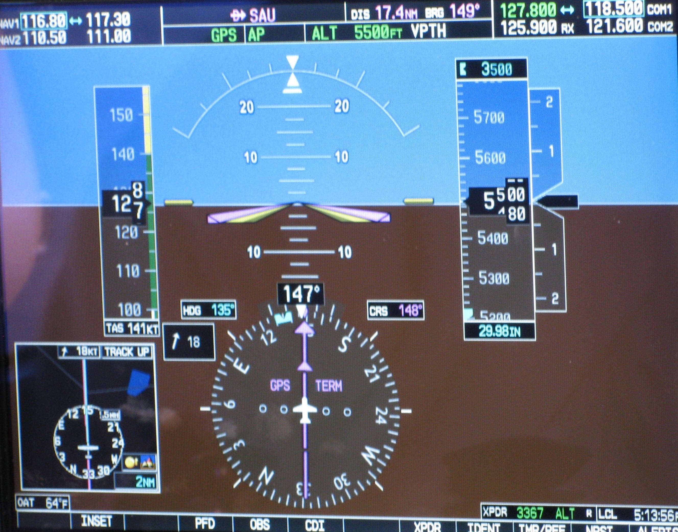 In a perfect training world, an argument could be made to begin training in an aircraft equipped with conventional round flight instruments, then transitioning to glass displays. However, there is a widespread notion that pilots should train on the most advanced equipment available. Any suggestion that favors older technology is quickly interpreted as nostalgia for “old school” practices, and out of date thinking. Nevertheless, let us not underestimate the challenges that glass displays pose when used in primary flight training. These can be minimized if the flight instructor recognizes the potential pitfalls and takes measures to ensure her students use outside references as primary, and inside information as secondary. The glass panel displays should be dimmed from time to time to allow the student to control the airplane with only the aid of standby instruments. If control skill is reduced when flying without the Primary Display, perhaps additional practice without it is warranted.